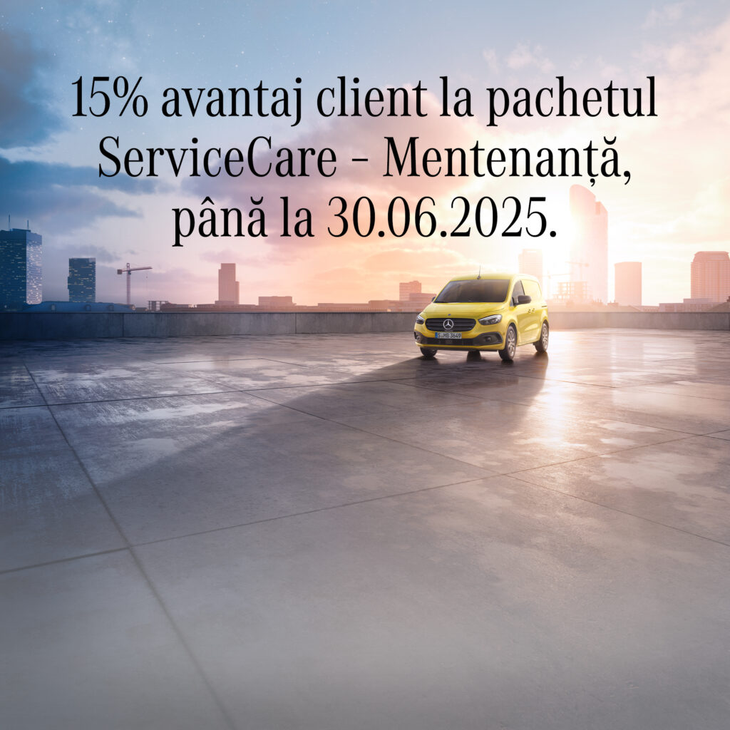 Modelul este disponibil în cadrul campaniei prelungite până pe 30.06.2025 la partenerii autorizați Mercedes-Benz.